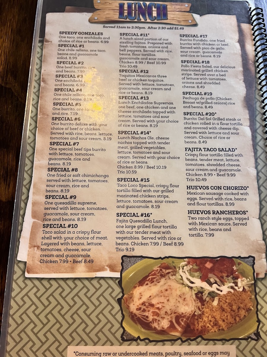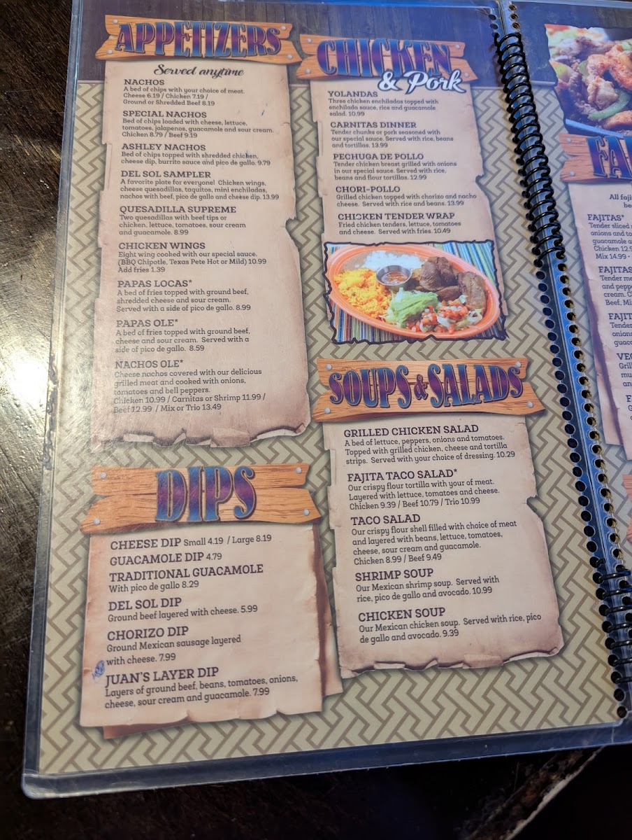 Del Sol Mexican Restaurant - Dillon Menu