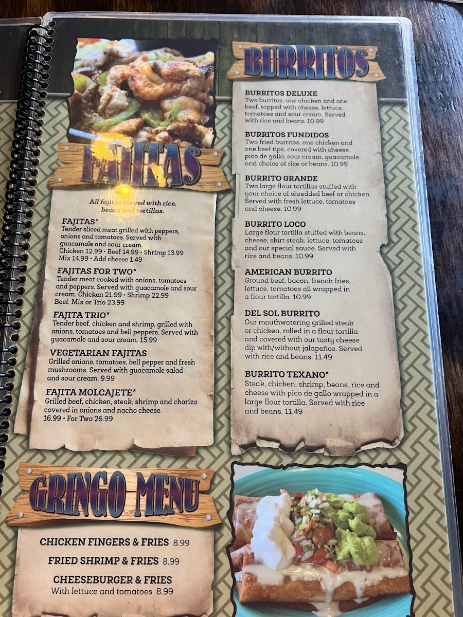 Del Sol Mexican Restaurant offers a straightforward menu that feels welcoming and familiar, perfect for casual meals any time of the day. The selections focus on classic Mexican fare with a few hearty twists, making it easy to find comforting dishes whether you're stopping in for a quick lunch or enjoying a relaxed dinner.